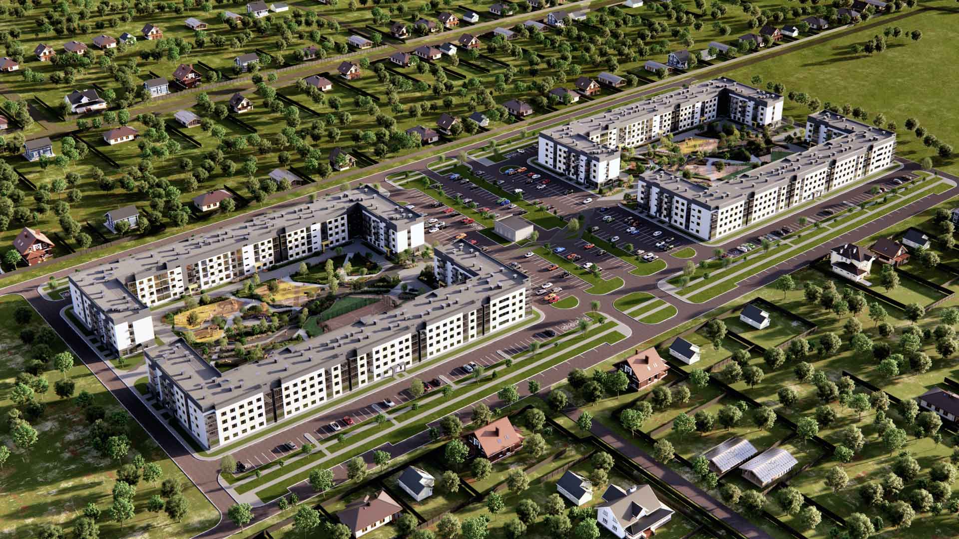 Комплекс воплощает комфорт и размеренность загородной жизни при сохранении современных городских стандартов. Четырёхэтажная архитектура создаёт ощущение простора и приватности, а продуманное благоустройство формирует стильную и уютную среду.